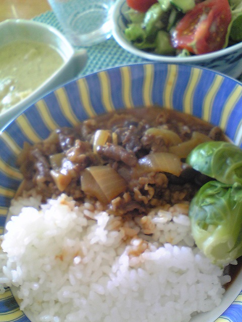 ハッシュドビーフ。芽キャベツが添えてあるのがうれしい♪