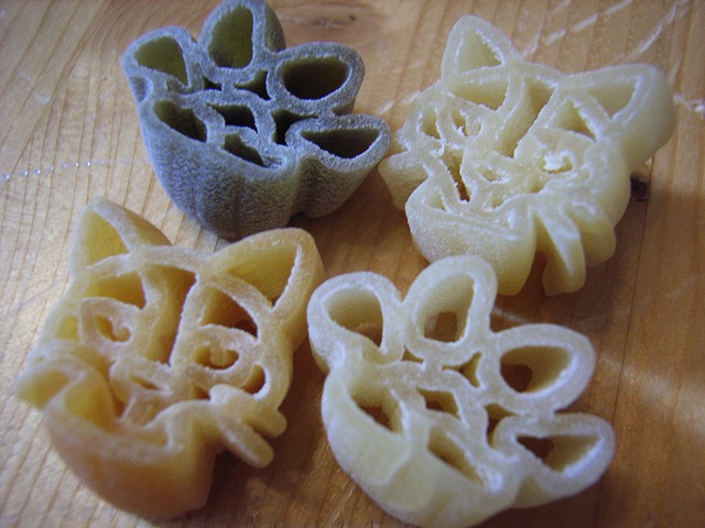 以前、ご近所Mちゃんから頂いた、猫パスタを使って、